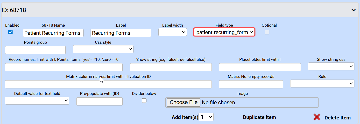 - This field can be incorporated in any form (e.g. Nursing Assessment) or used as a stand-alone form with only one field to manage recurring assessments.