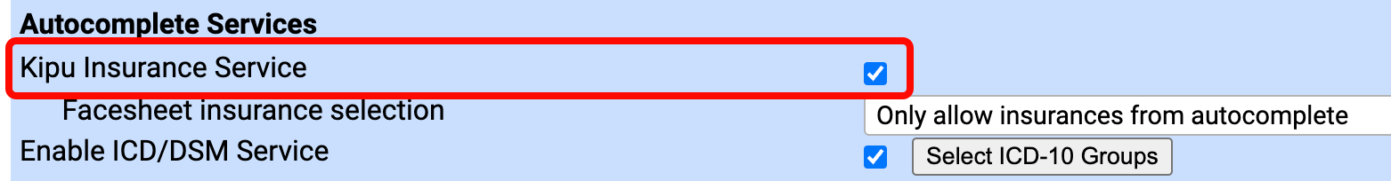 - Check the Kipu Insurance Service box.