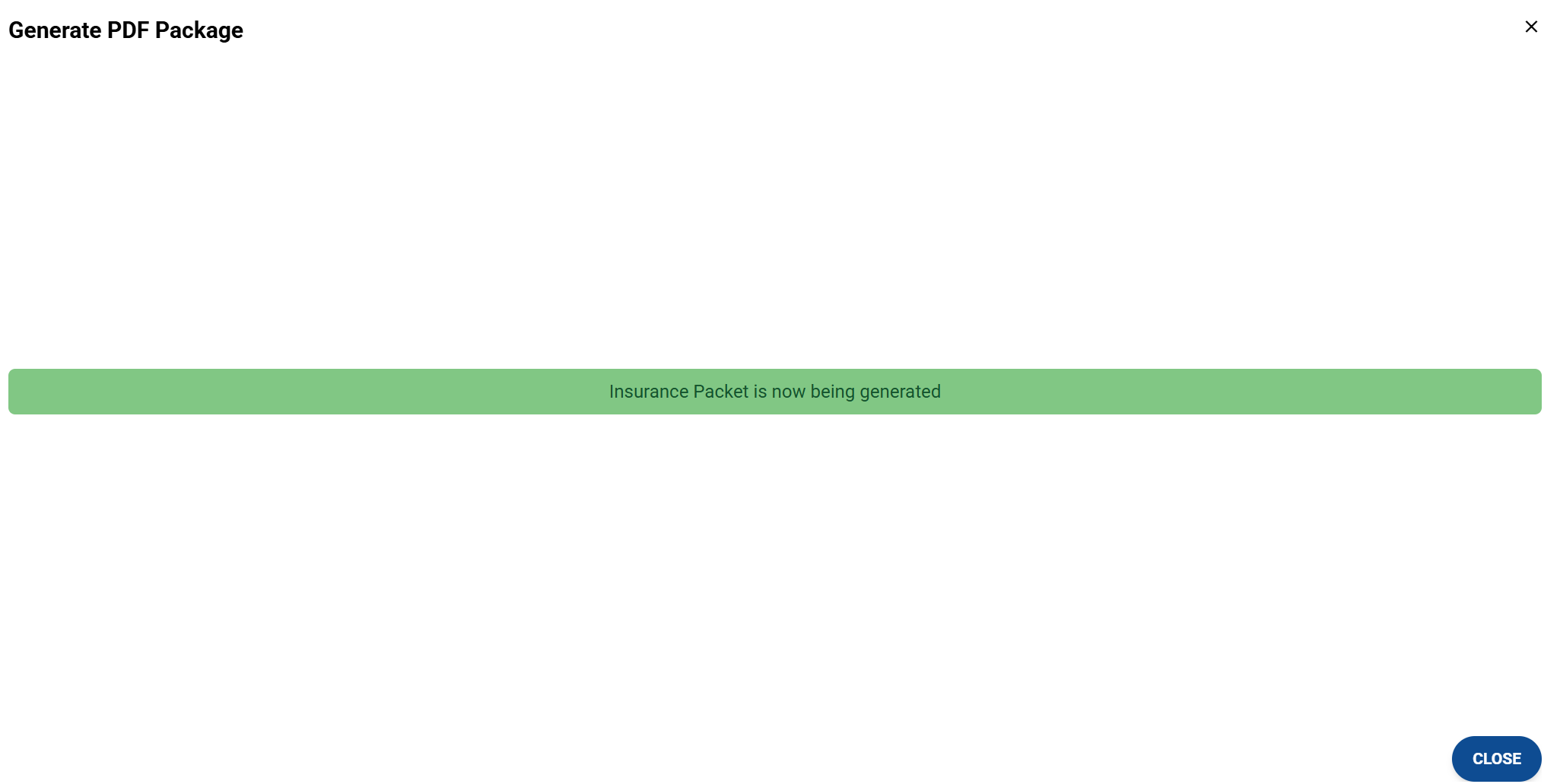 The system displays a green message when PDF package is generating.