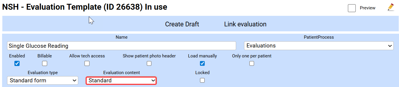 Set the Evaluation content drop-down to Standard. |