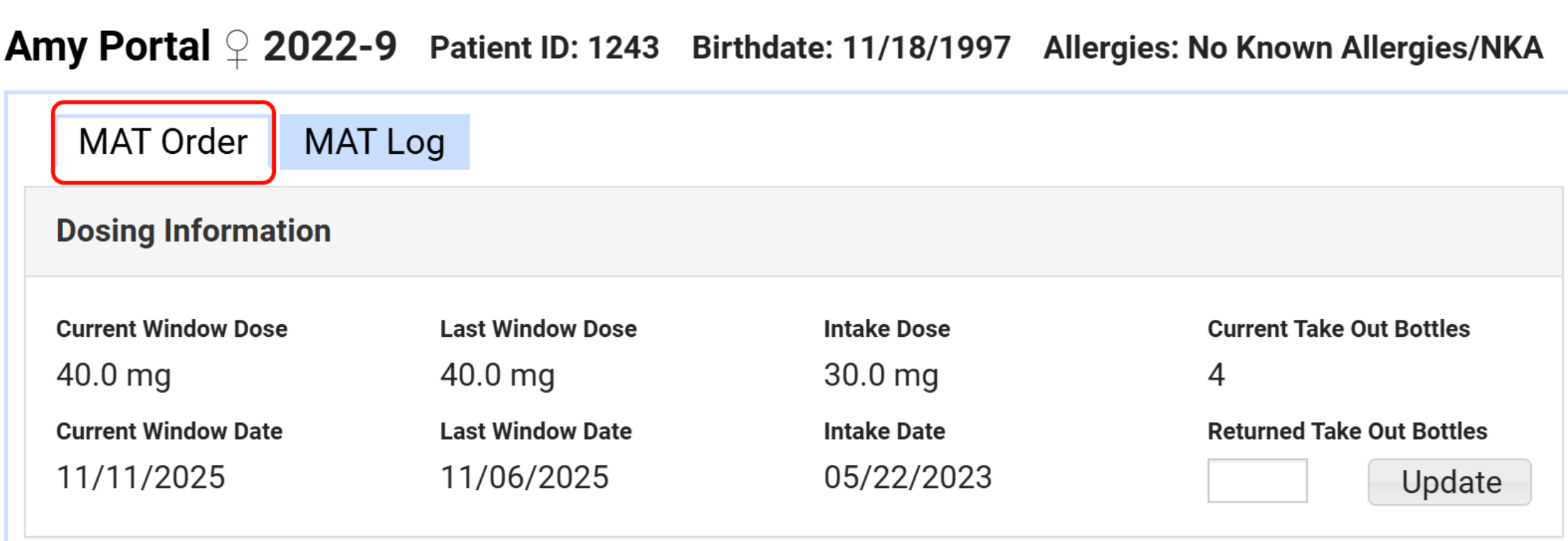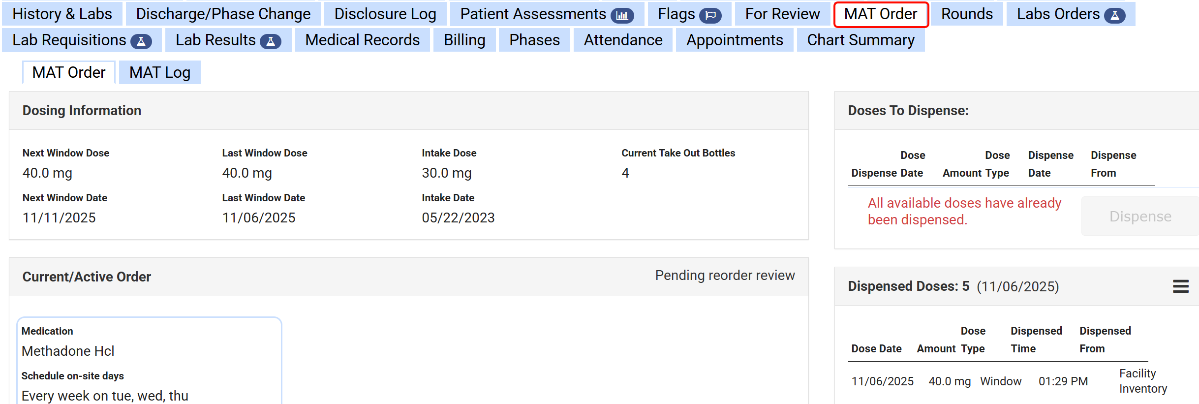 - Navigate to the MAT Order tab from the Dosing Queue.