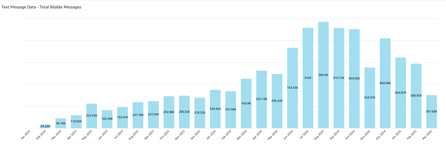 - View a chart that displays a count of all billable messages (both delivered and failed).