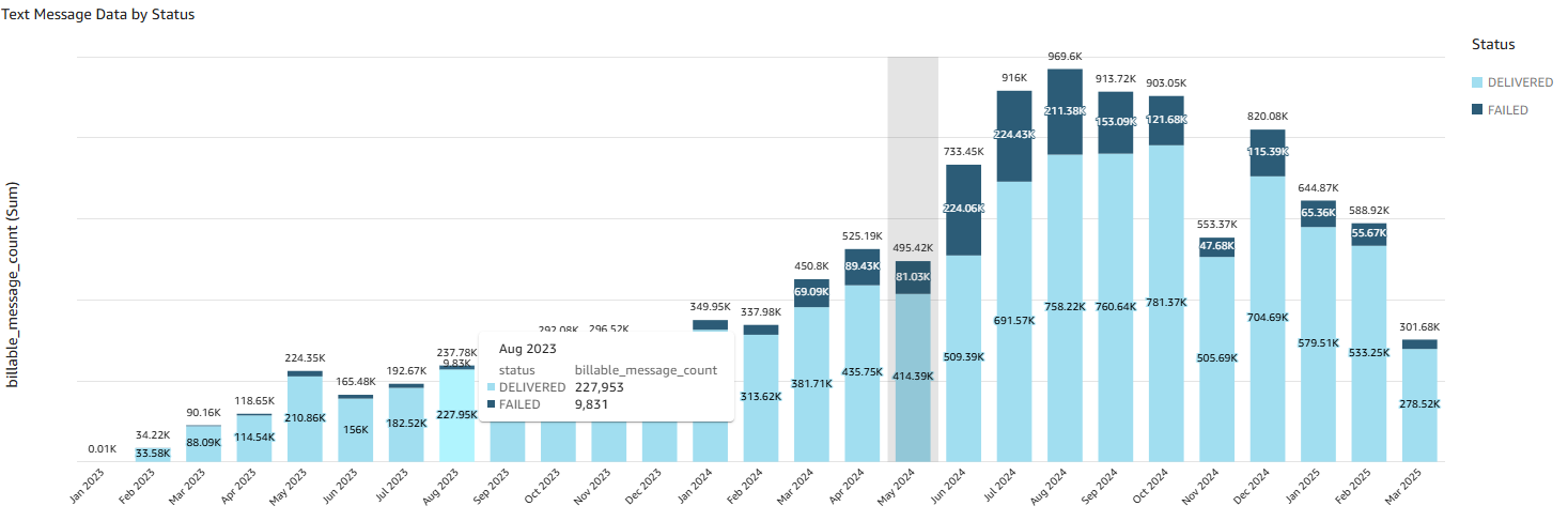 - View a chart that displays text message count by status (Delivered or Failed).