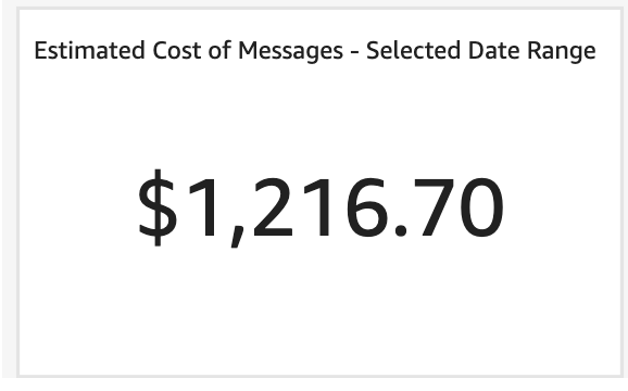 - The Estimated Cost of Messages tile multiplies the total number of sent messages by $.02 to get the calculated value. Note this may vary from what you see on your invoice based on the date range of this report.