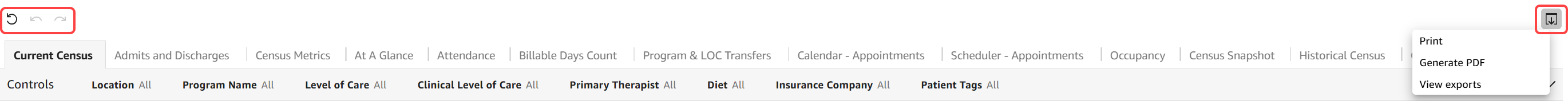 - The circular arrow refreshes the data, while the back and forward arrows undo and redo changes respectively.