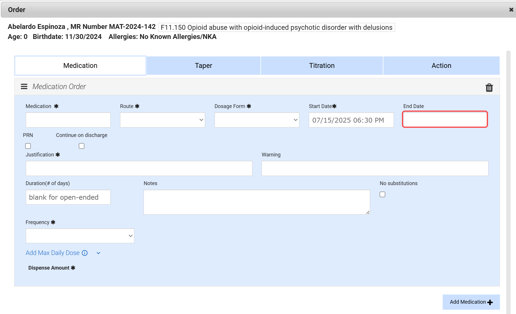 - MAT Orders: Fixed an issue that prevented the Add Doses order from being created when a patient had a Special Take Out order dispensed.