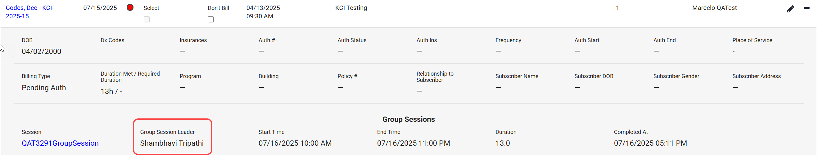 Billing: Updated the expanded view group session Provider label to Group Session Leader for accuracy.