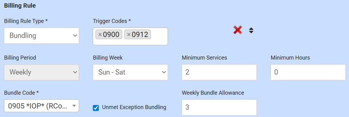 Billing: Added a new payer rule that allows billers to configure specific payers to bundle services weekly. For these payers, we also added the option to define a minimum required hours and a minimum count of services for the week that must be met before the bundle code applies. Lastly, we added an exception bundling option, which allows items to remain bundled as an exception even if the requirements were not met. Check out this article for more information.