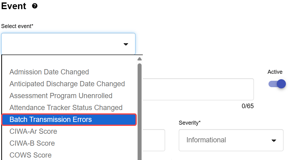 Billing: Users can now configure a new notification for integrated billing batch transmissions that triggers a notification and email when a batch contains at least one item that did not successfully transmit to CMD or the Kipu RCM. For more information on notifications, check out this article.