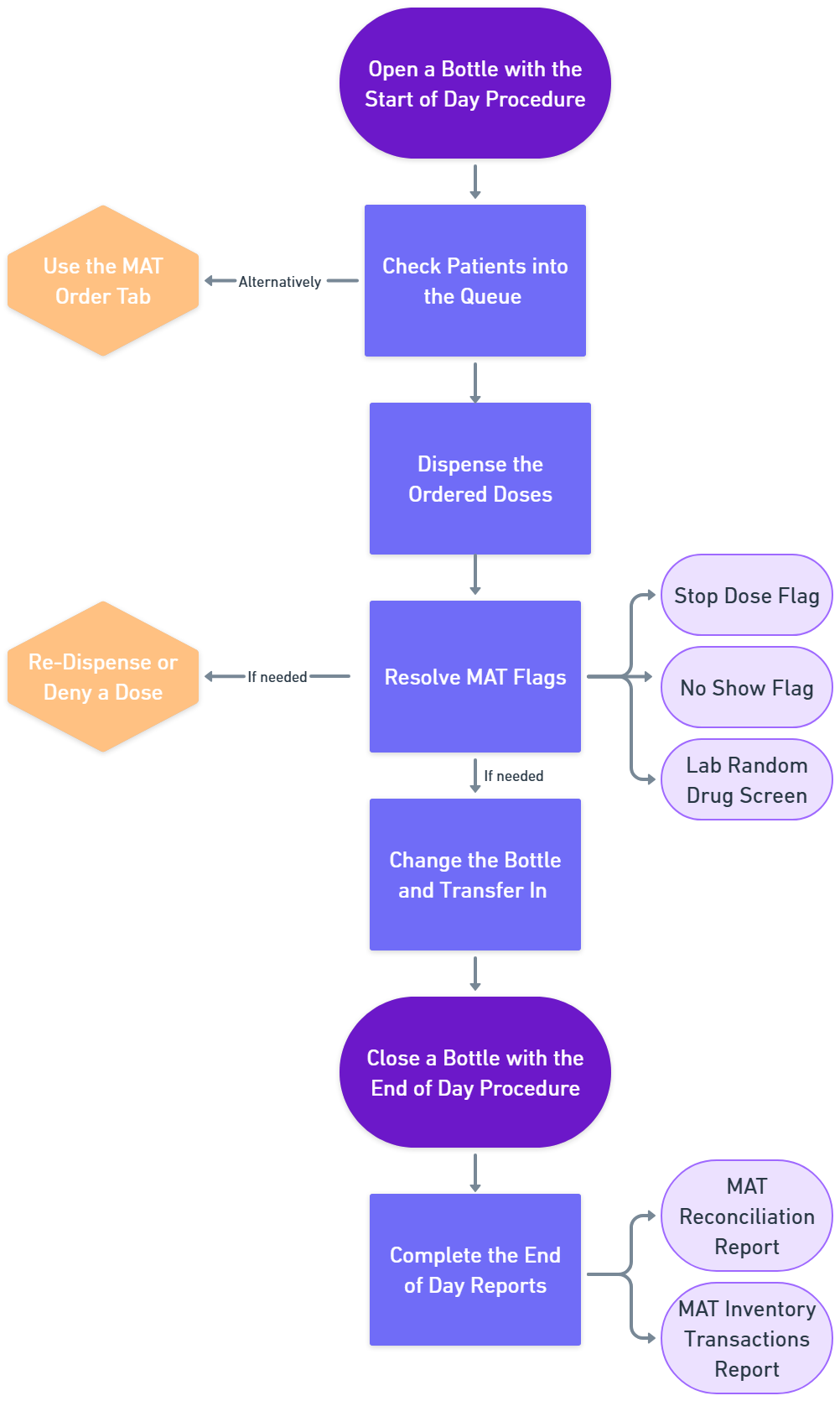 This article walks you through the complete Medication-Assisted Treatment (MAT) workflow from opening the methadone bottle at the start of the day to closing and reporting at the end of the day.