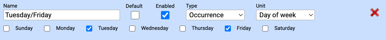 - Select Occurrence from the Type drop-down and Day of week from the Unit drop-down.