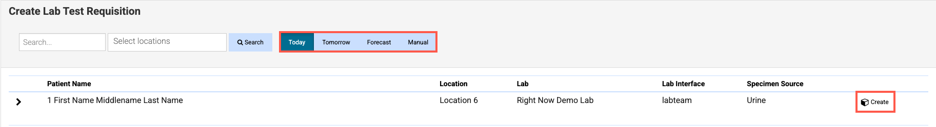 You can always create a manual requisition if the patient has an active lab order, even if they are not showing on the Due Today tab.
