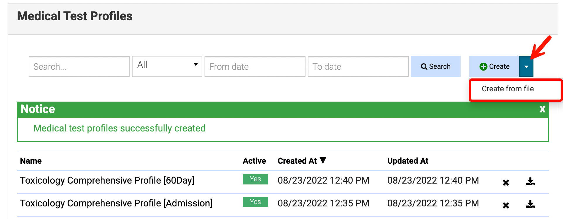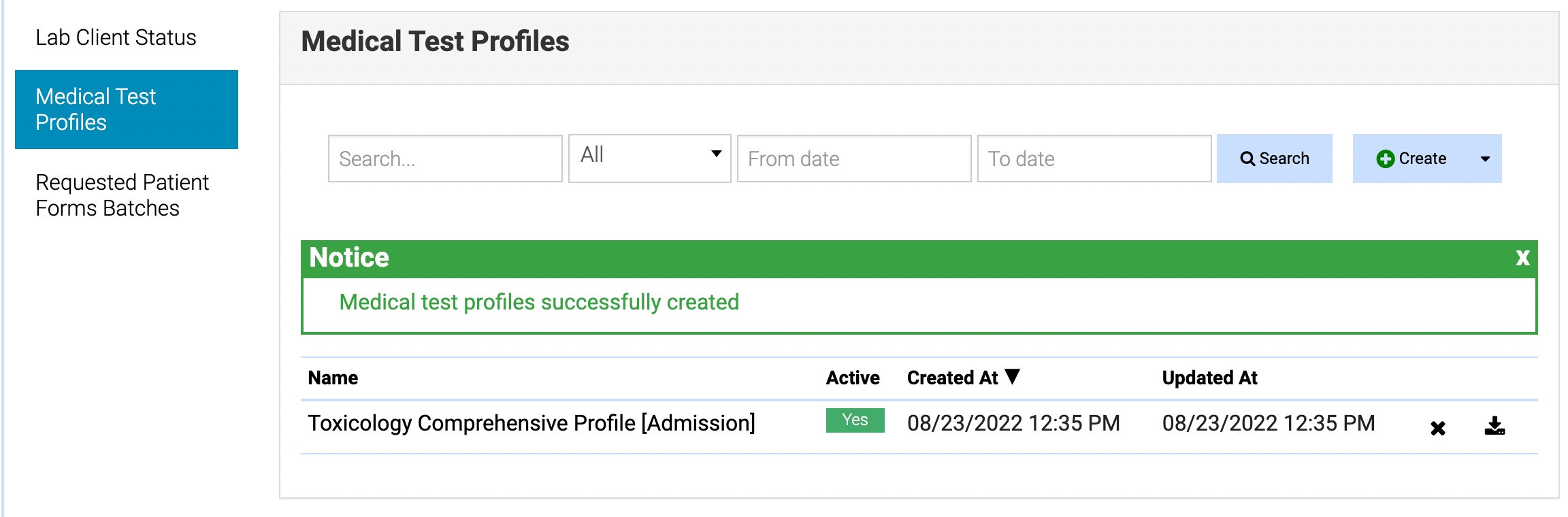 - The medical test profile is ready for use.