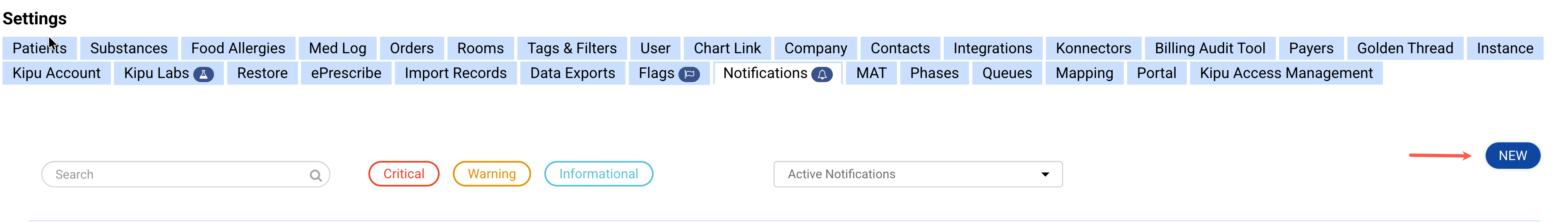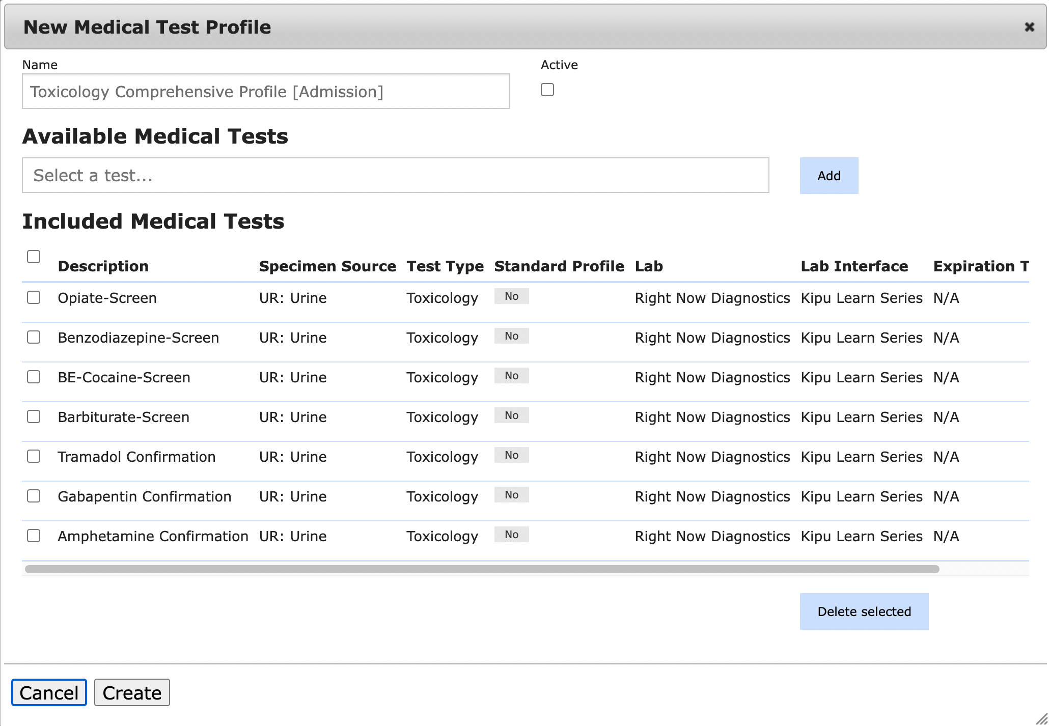 To begin, select Medical Test Profiles in the Kipu Labs tab.