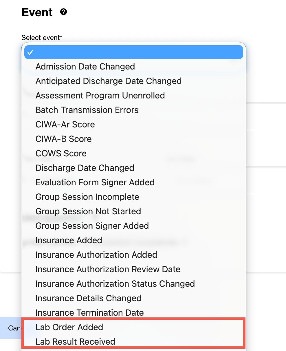 Select the event drop-down and choose the correct notification type. For Labs, there are two options: