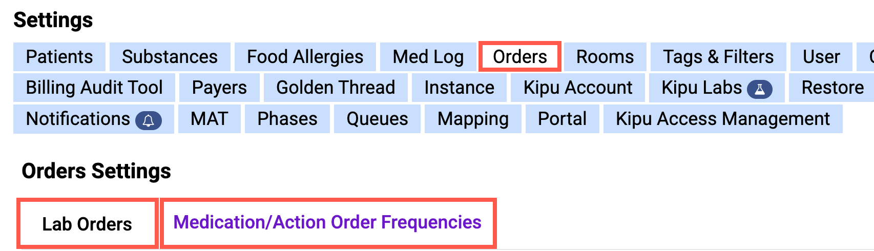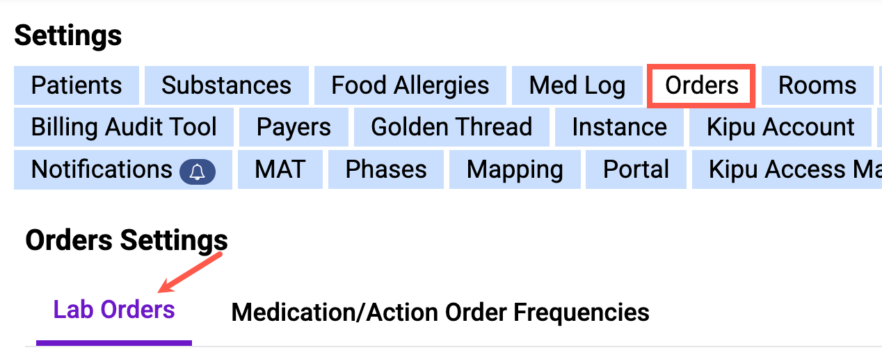 Super Admins can set customized lab order durations in Kipu settings.