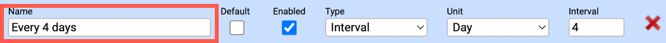 - Set the interval to the number of days the patient will be due for testing. If the patient needs to be tested every 4 days, input 4.
