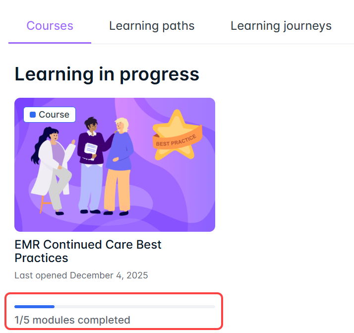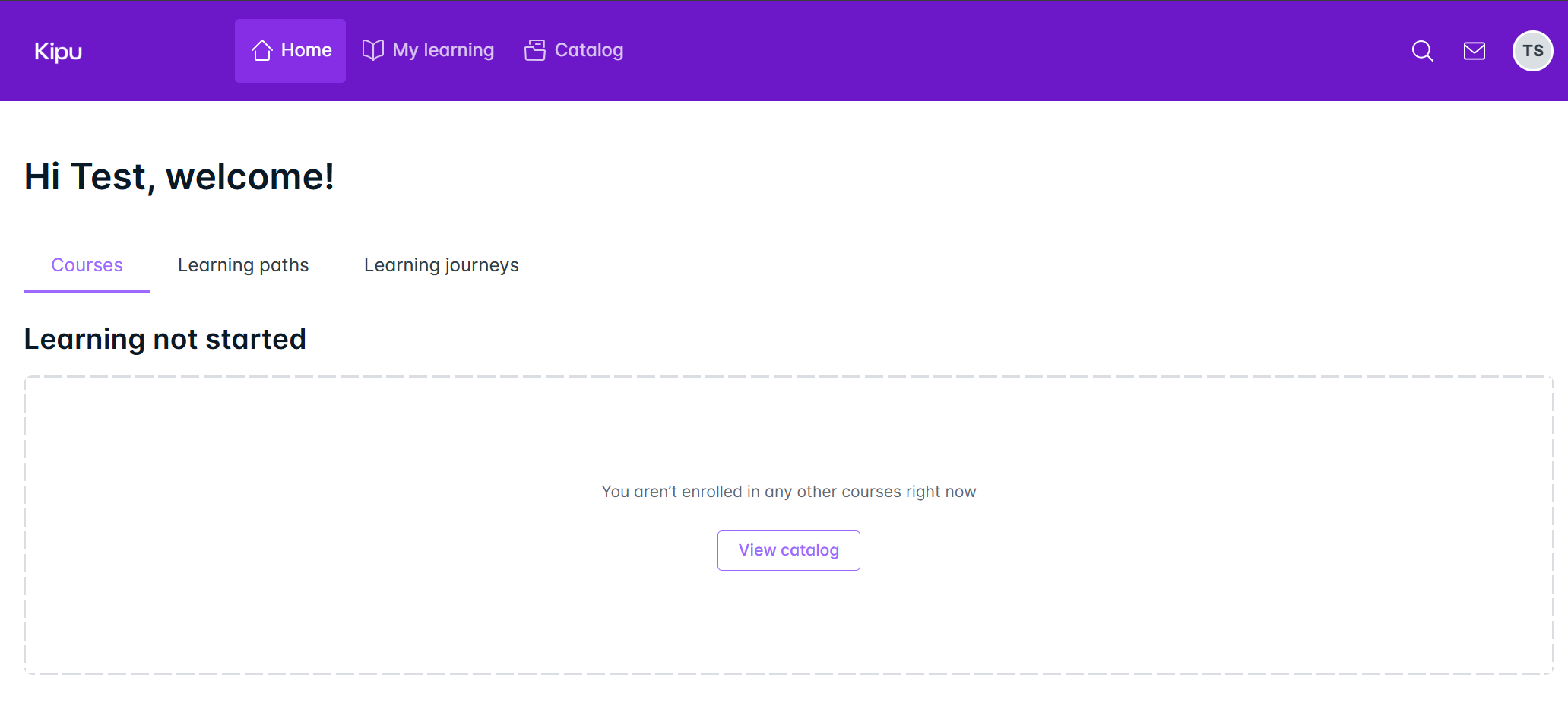 Once you have logged in, if you have already been assigned courses, learning paths, or learning journeys, you can find them on your Home or My Learning tab. Click on the desired course/learning path/learning journey to begin!
