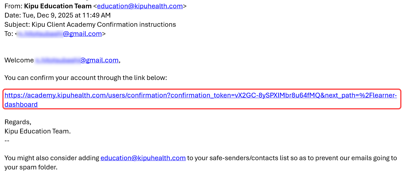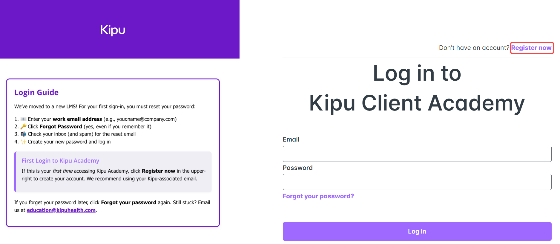 In order to access Kipu Academy as a learner, you must either receive an invite email from your organization or create your own account to begin.