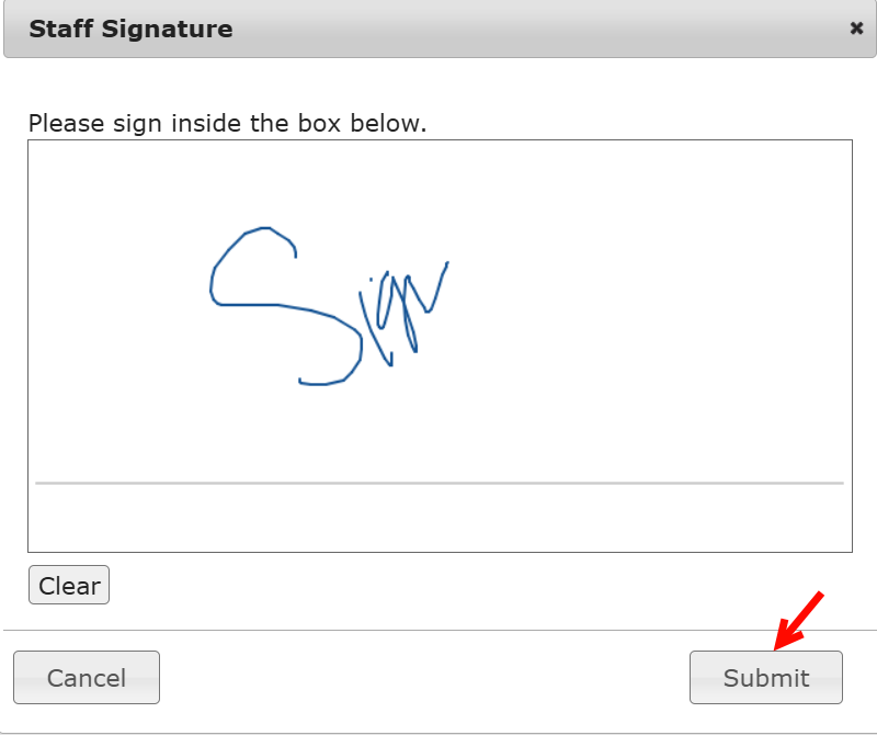 - Sign your name on the staff signature box and click Submit.