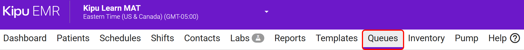 - Click on the Queues tab in the header. Click here to learn more about the queues.