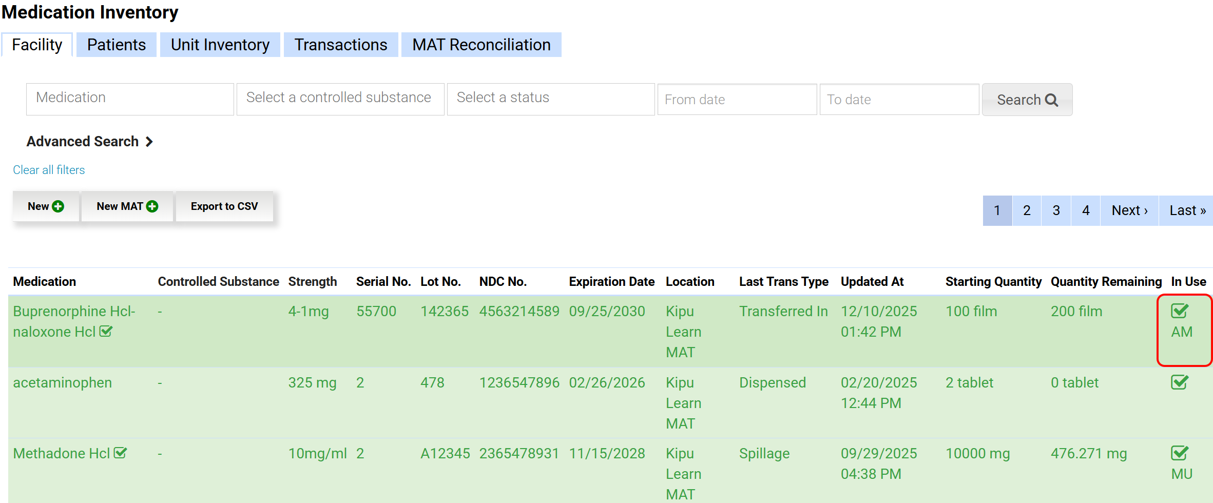 The End of Day process allows you to close any medication bottles that were used during the day and return them to Inventory.
