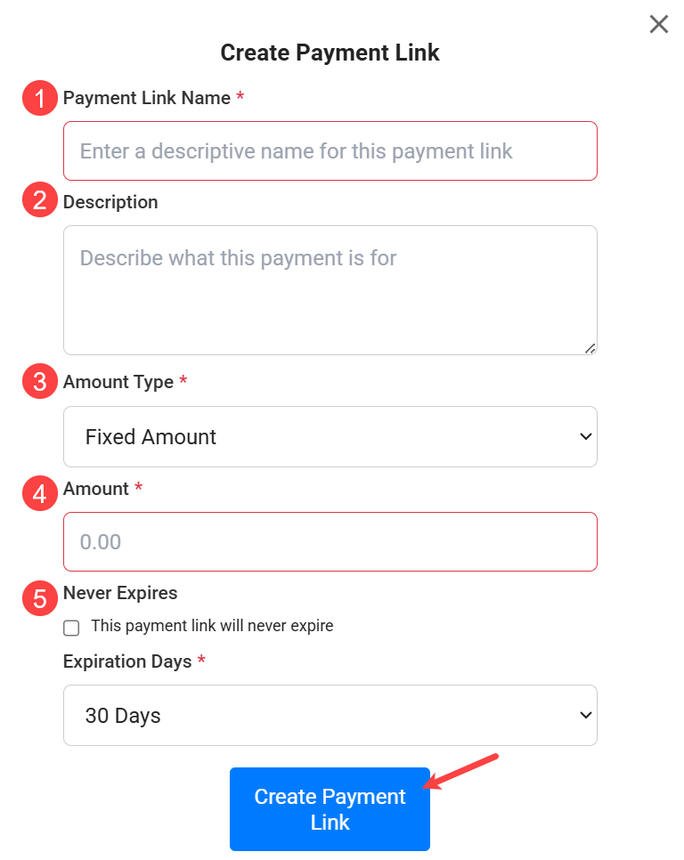 - To begin, click Create Payment Link.