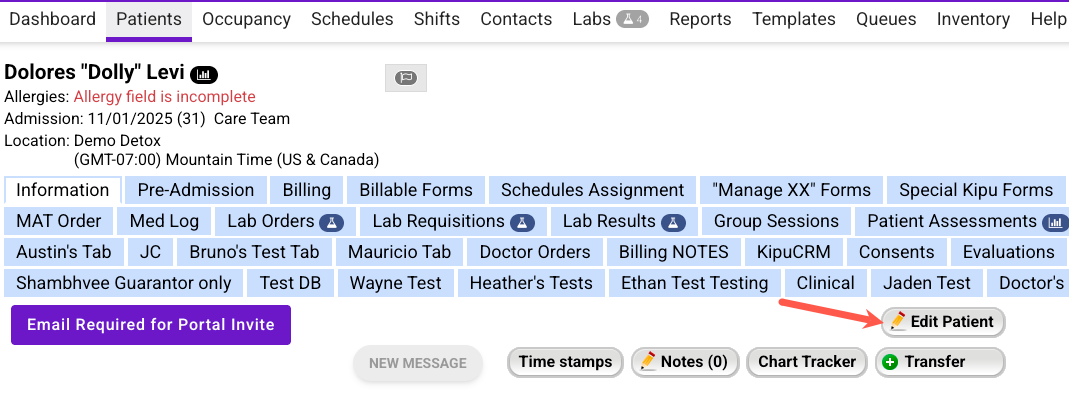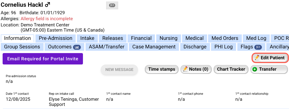 - Open the patient chart and select Edit Patient.