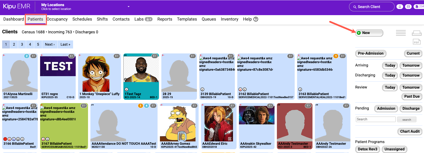 - In the EMR, navigate to the Patients tab and click New.