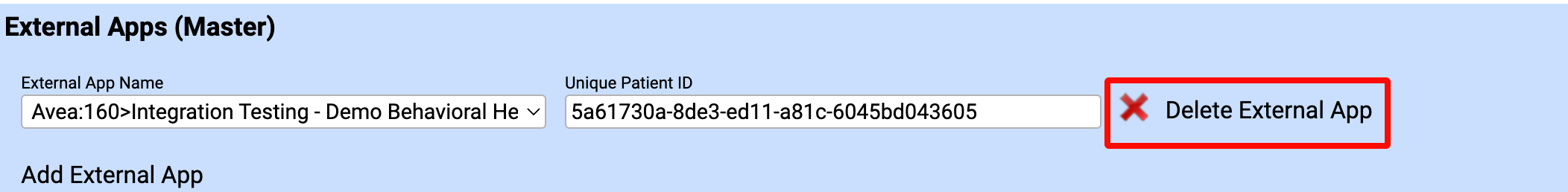 - Scroll to the External App section and click Delete External App.