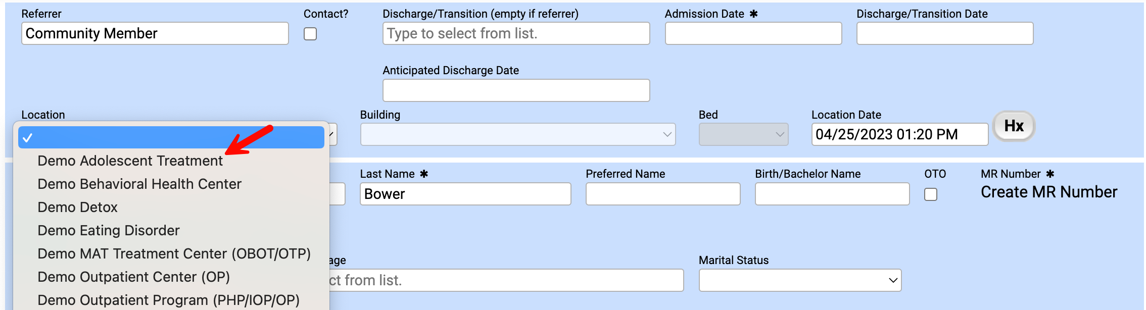 Location: Select a location for this patient's chart. Typically, this is where they will be treated.