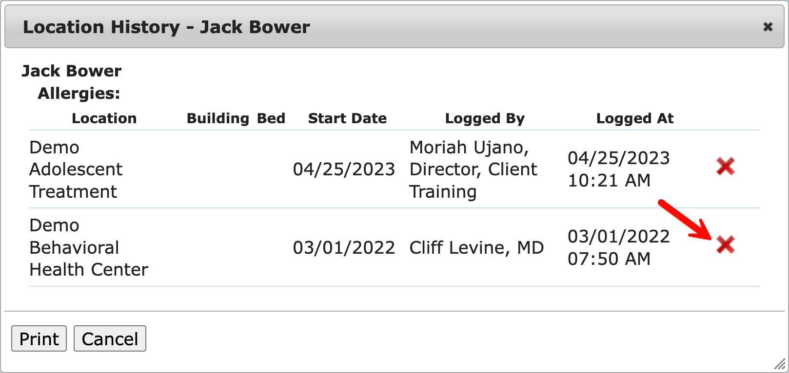 - Next, click the X to remove the wrong location then click OK to confirm the deletion.