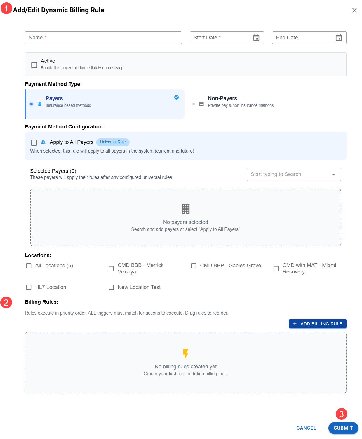 Once you've set up the payer section, you can create billing rules.