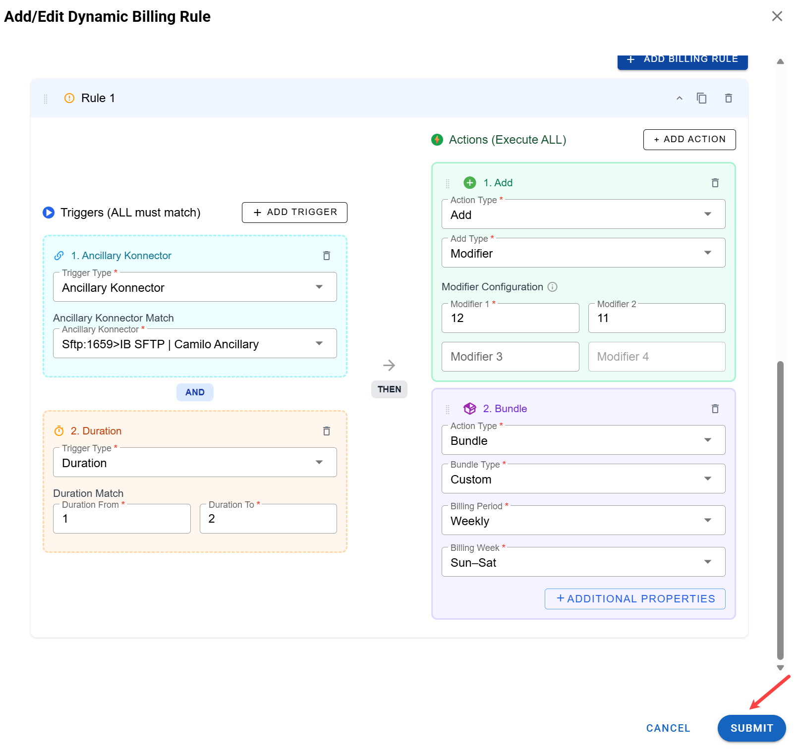 Once you have completed the billing rule setup, be sure to click Submit to save your rule.