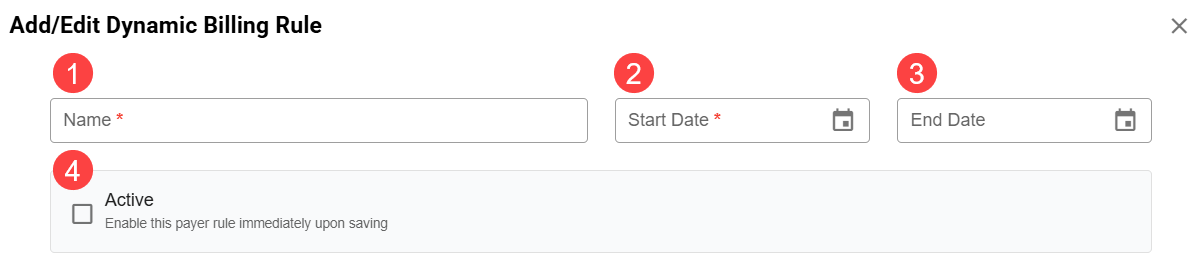 - End Date: This field is optional and can be used to provide a date after which the rule will no longer be applied to matching charges.