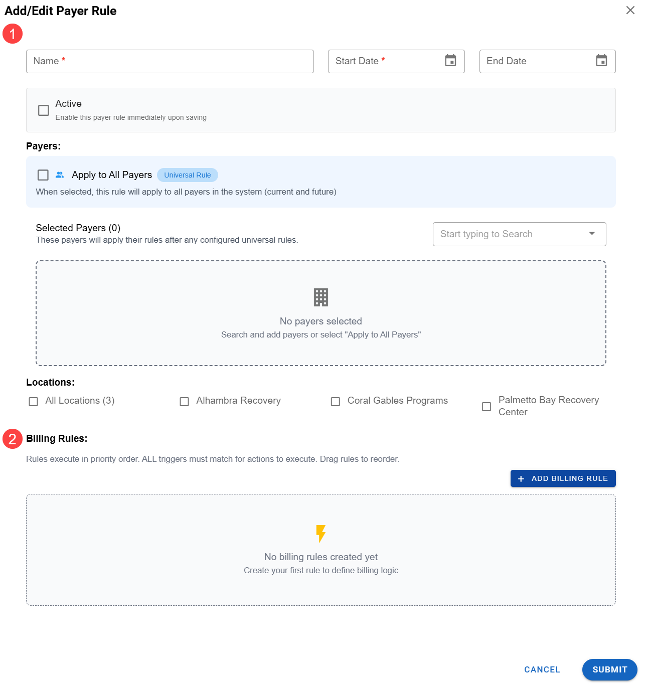 Once you've set up the payer section, you can create billing rules.