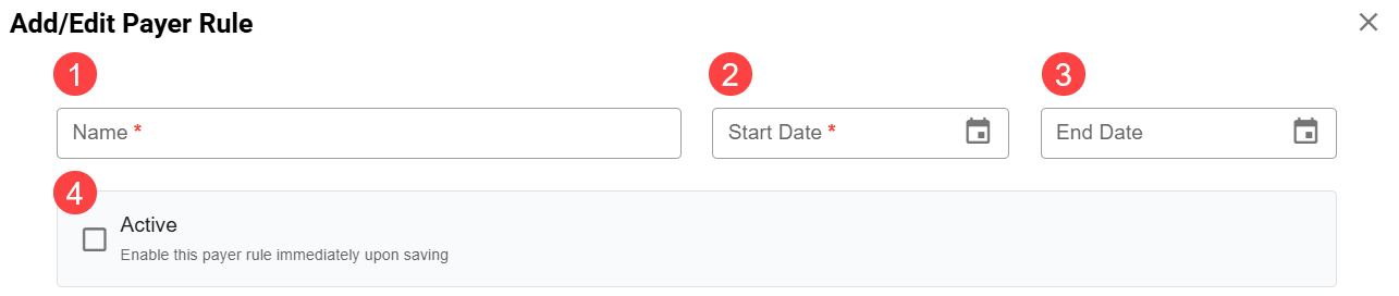 - End Date: This field is optional and can be used to provide a date after which the rule will no longer be applied to matching charges.