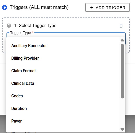 An ancillary konnector trigger will look for billing items with the selected ancillary konnector and perform the actions.