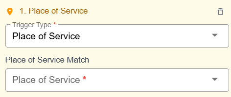 The place of service trigger type, when added to a billing rule, means that when a billing item has the chosen place of service, it will follow the actions indicated in the rule. Program