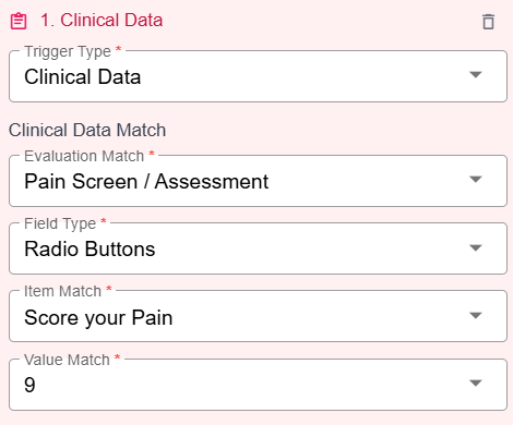 Choose Institutional or Professional from the Claim Format Match field, and rules with this trigger type will apply to claims that match the selected format. Clinical Data