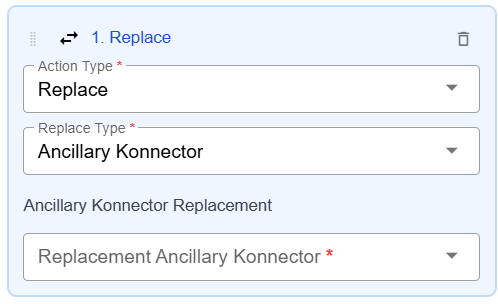 To replace ancillary konnector types, use this replace option in conjunction with an Ancillary Konnector trigger.