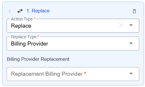 To replace billing providers, use this Replace option in conjunction with a Billing Provider trigger.