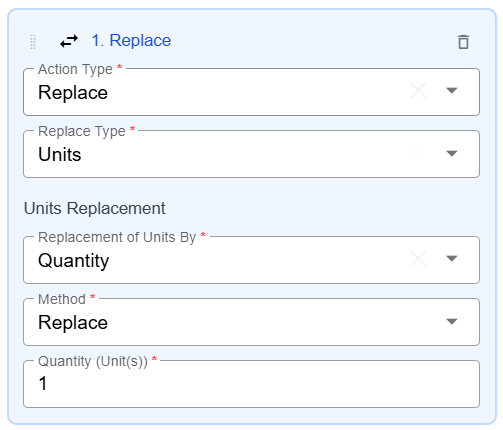 To replace the unit quantity type, use this Replace option.