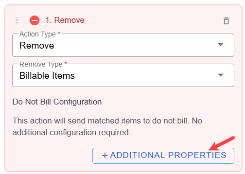- Choose Billable Items from the Remove Type drop-down to remove the items that meet the trigger criteria set up in the rule.