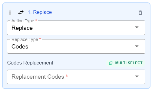 To replace codes, use this Replace option in conjunction with the Codes trigger.