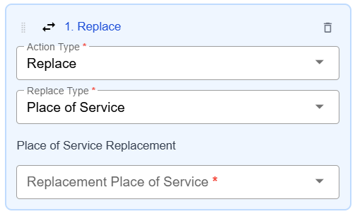 To replace a place of service, use this Replace option in conjunction with the Place of Service trigger.