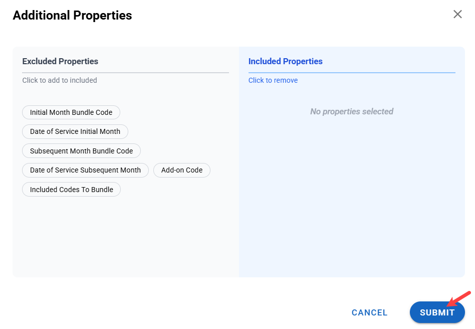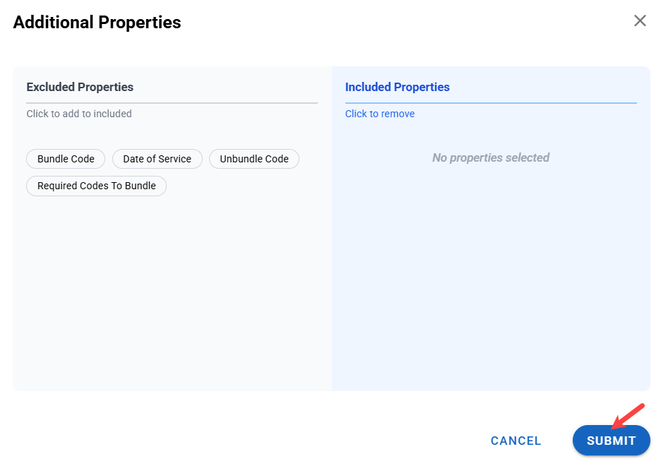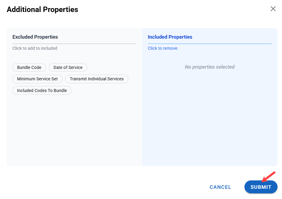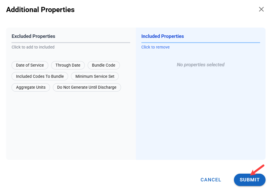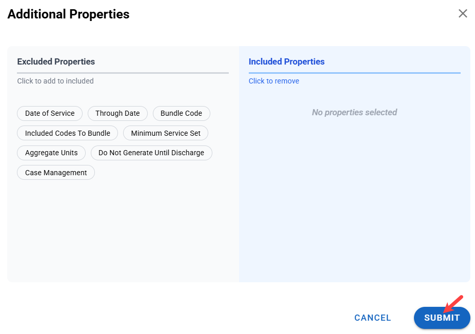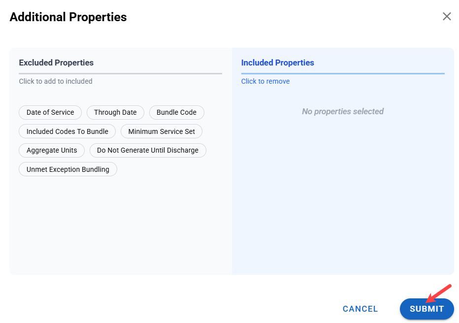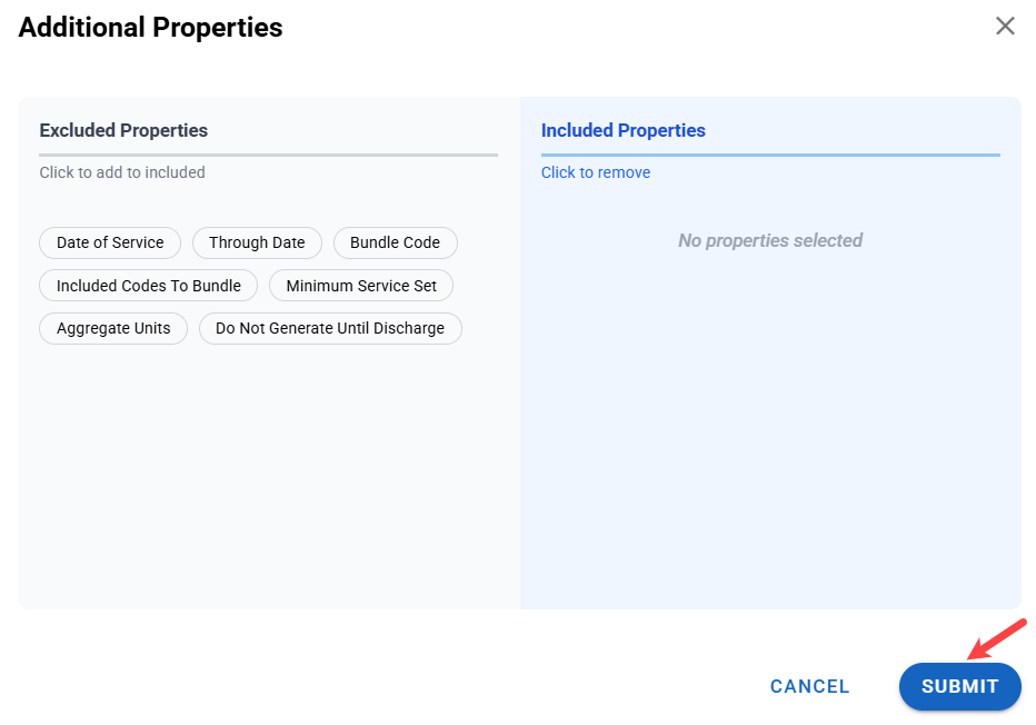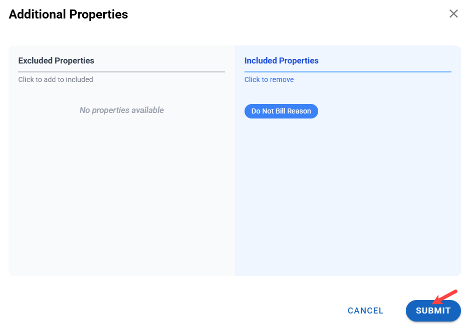 - Additional properties allow you to edit which elements are included or excluded. In this instance, you can include or exclude a Do Not Bill reason. Currently, it is excluded.