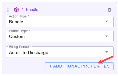 When you choose the Admit to Discharge billing period option, billing items that meet the trigger type stipulation will be bundled by Admit to Discharge. Add additional items to refine which elements are included in the bundle.