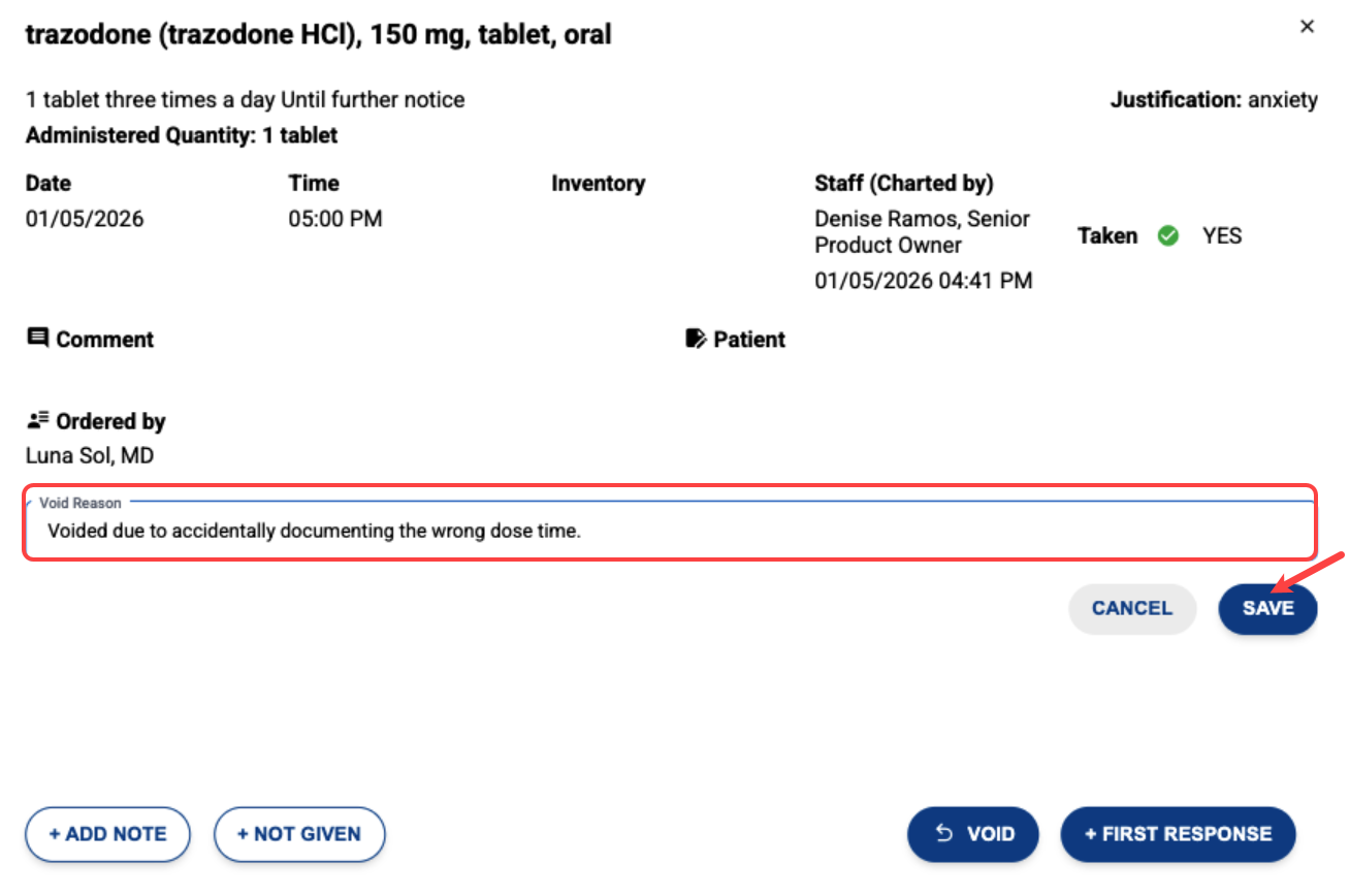 New MAR: Users must now enter a Void Reason to save a voided administration. Click here for more information about voiding doses.