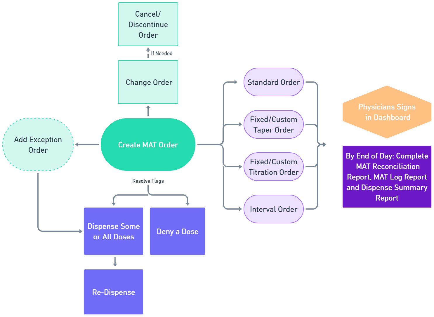 This article provides a complete overview of the Medication-Assisted Treatment (MAT) Order and Dispensing workflow. It is designed to guide staff through the recommended daily process for creating, dispensing, and managing MAT orders.